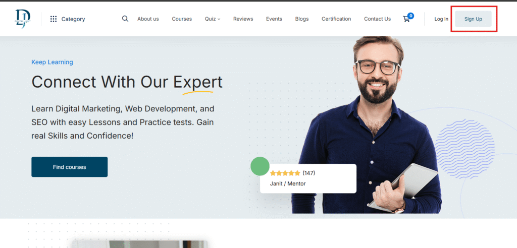 Step 1: Click the Sign Up button located at the top right corner.
